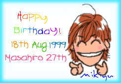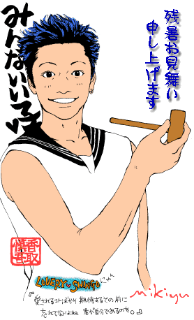 この前までのトップページ用イラスト。 これ超お気に入りなのだ♪ 去年、髪青かったでしょ? あの髪の色と髪型すごく好き! って、慎吾はどんな髪型しても 慎吾だからよいのです。 |